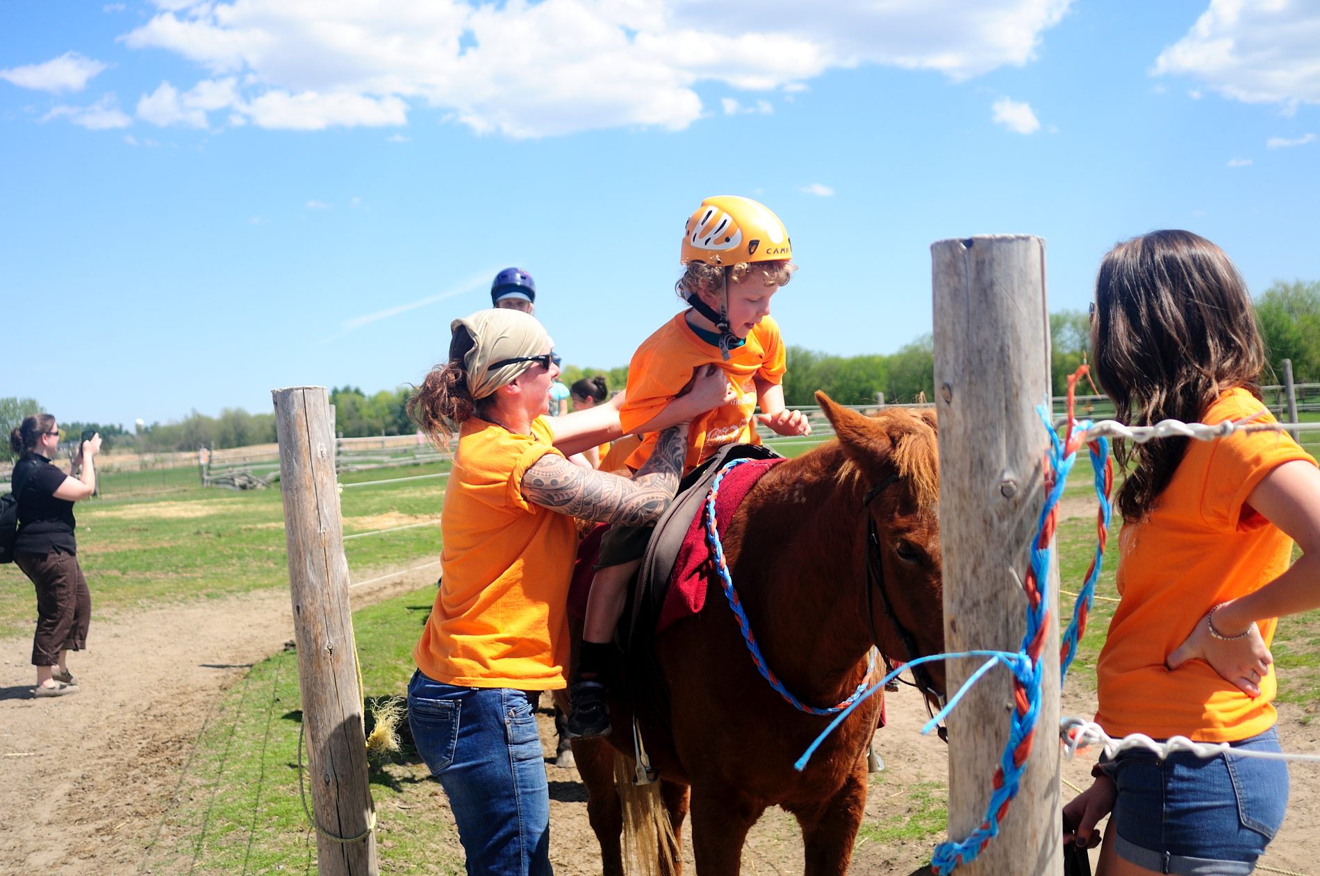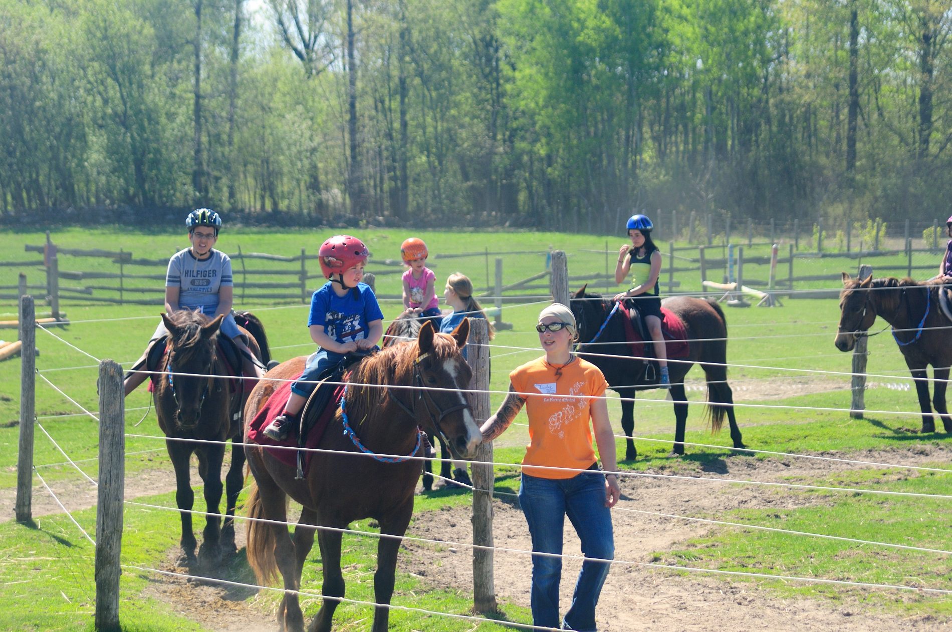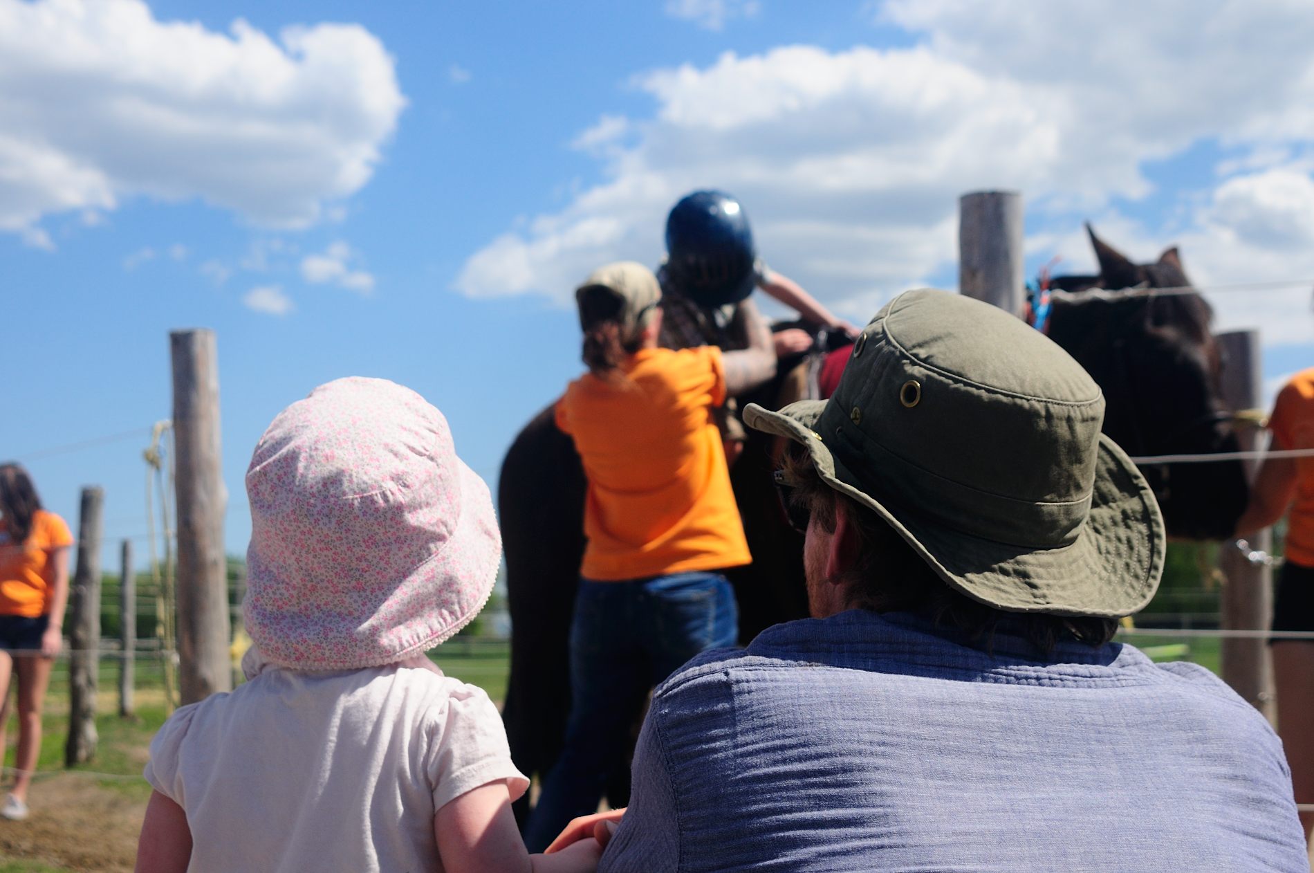 Julie est à l’équitation et met des enfants sur les chevaux toute la journée, sans un petit coin d’ombre 🙁