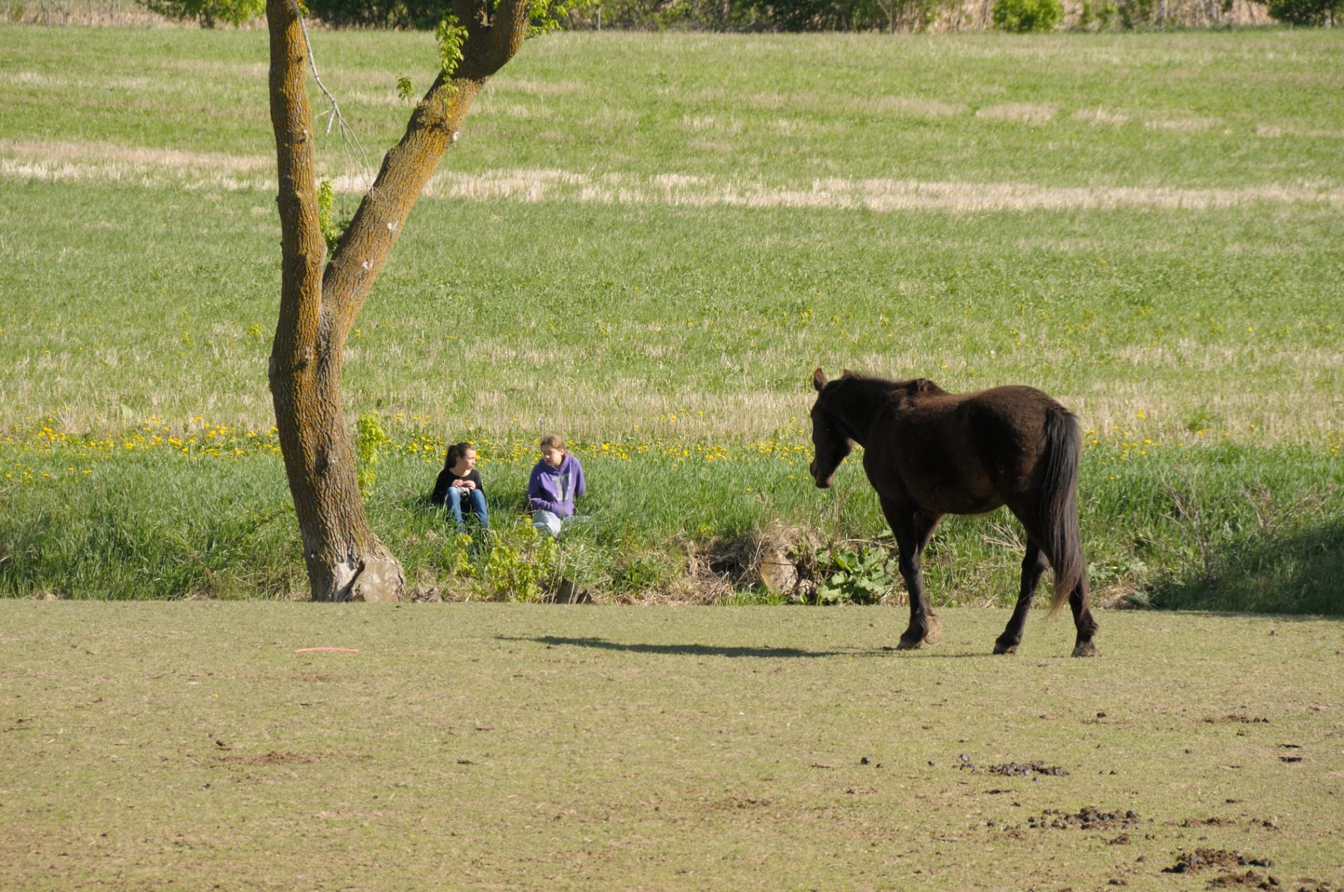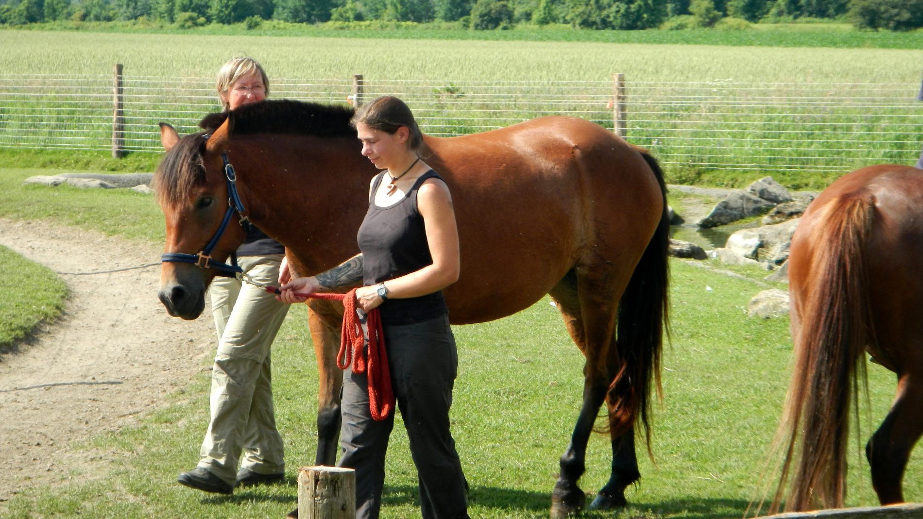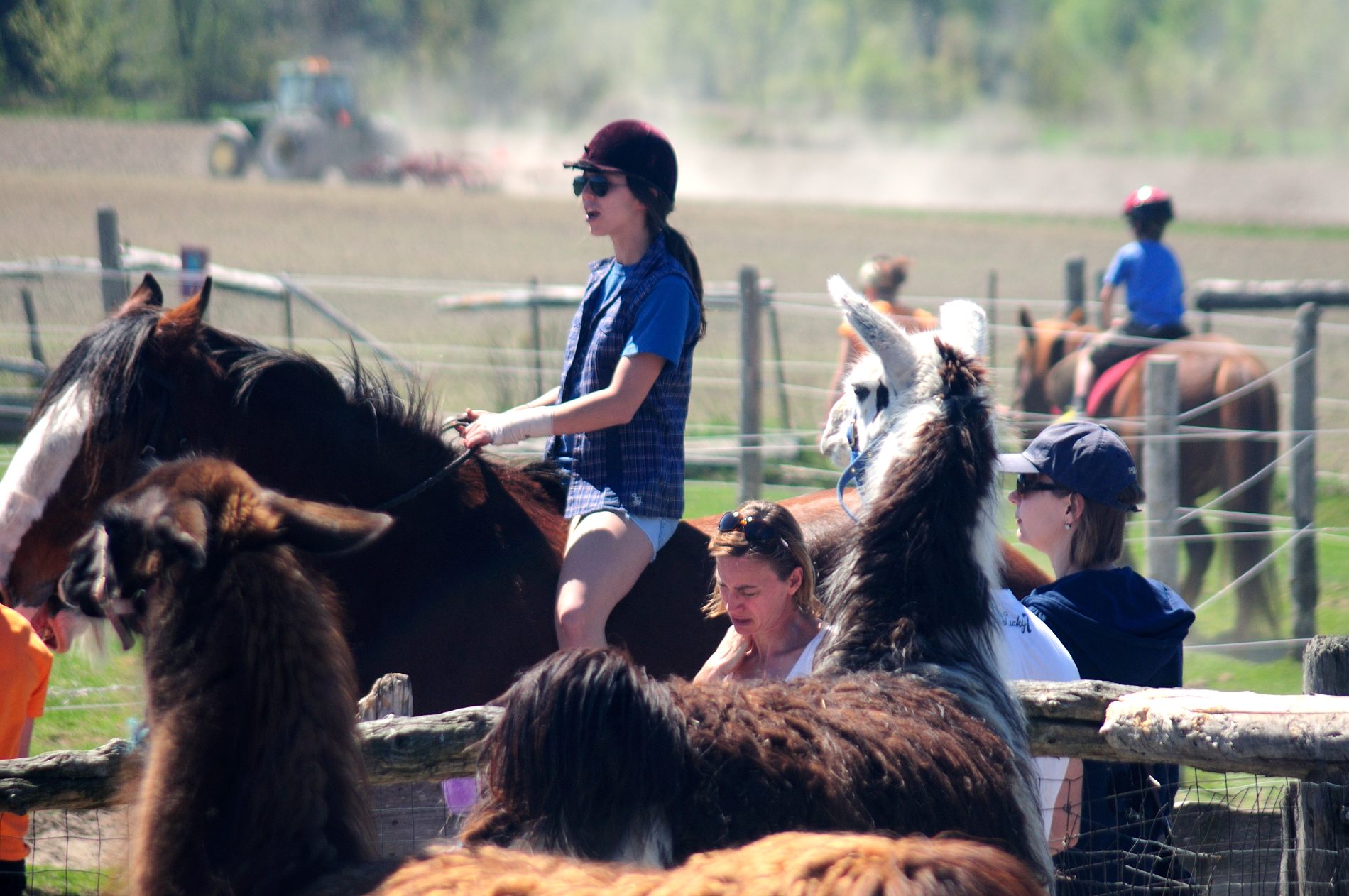 Julie est à l’équitation et met des enfants sur les chevaux toute la journée, sans un petit coin d’ombre 🙁
