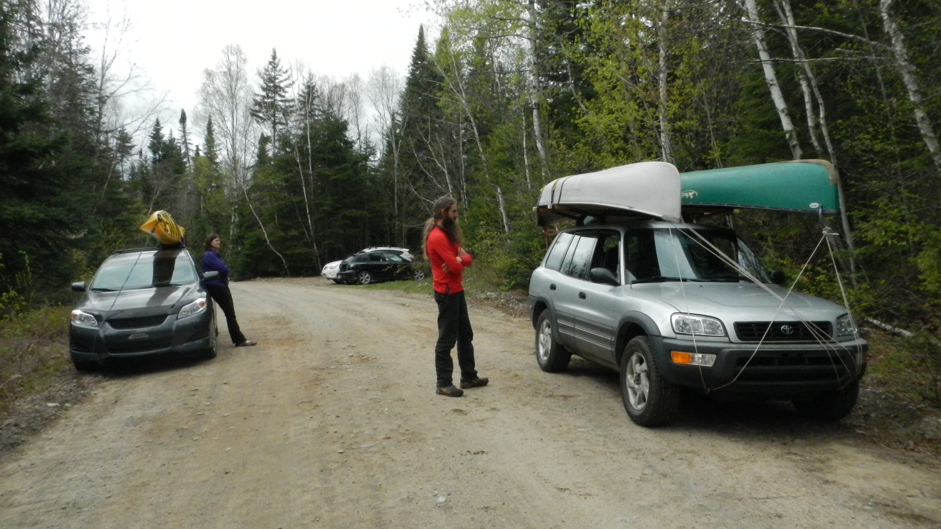 Nous voilà partis, bien organisés avec 2 voitures, avec sur le toit de Maude son kayak et sur le toit de Louis-Philippe 2 canots.