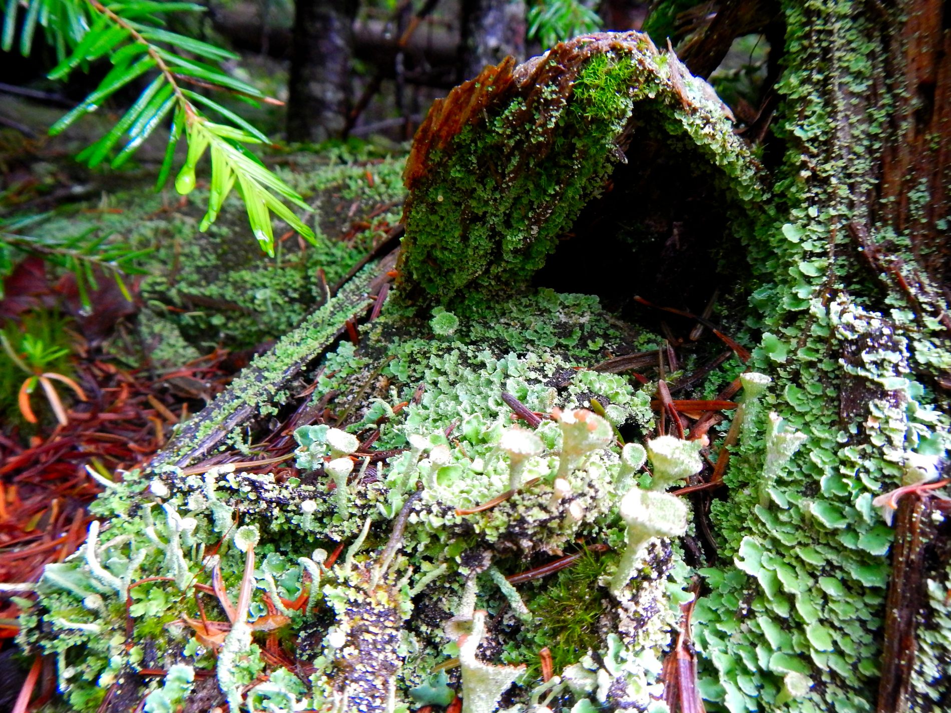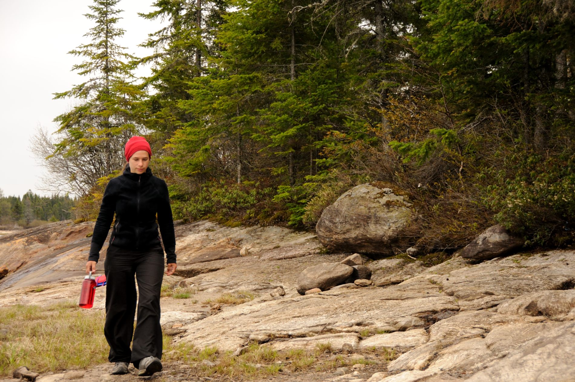 On a découvert un paysage extrêmement varié en des temps records. En 10 min on pouvait passer d’une forêt presque tropicale, chaude et humide, puis une forêt de pins avec des gros blocs rocheux à la Fontainebleau, ensuite un plateau rocheux semi lisse. C’est aussi l’un des seuls endroits qui bénéficie d’un micro climat que l’on retrouverait normalement 2000 km plus au nord. Le paysage ressemble à la Taiga, assez sec et du magnifique lichen qui jonche le sol. C’est d’autant plus impressionnant après la pluie où le lichen se gorge d’eau et devient très spongieux, alors qu’on était étonnés de sa dureté, comme une éponge naturelle sèche. Il y a différentes espèces de lichens, on pourrait vous en citer 3-4 qu’on a pu observer, alors qu’un guide pourrait vous en citer plus d’une dizaine pour la même zone 😉
