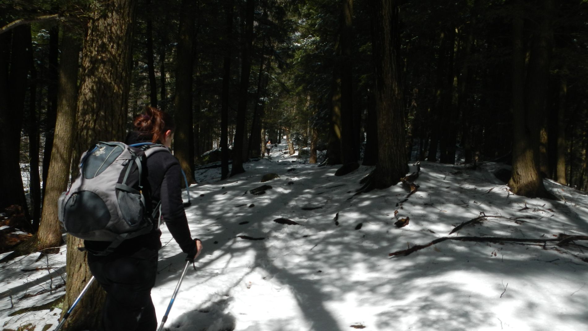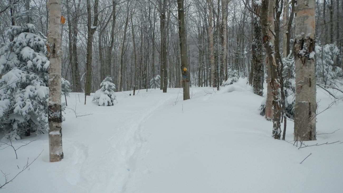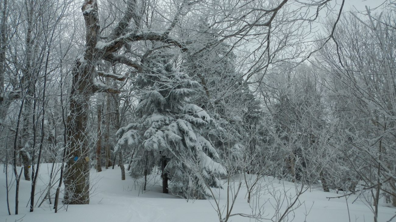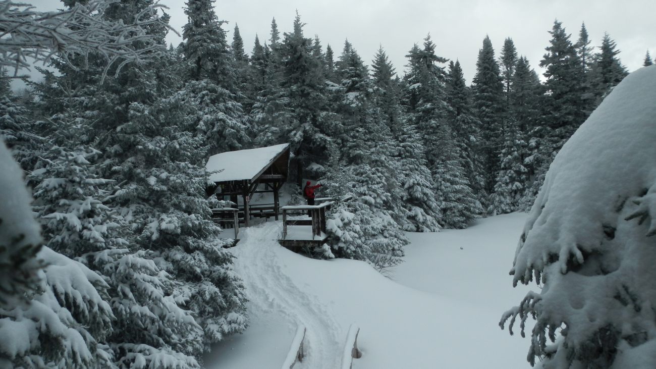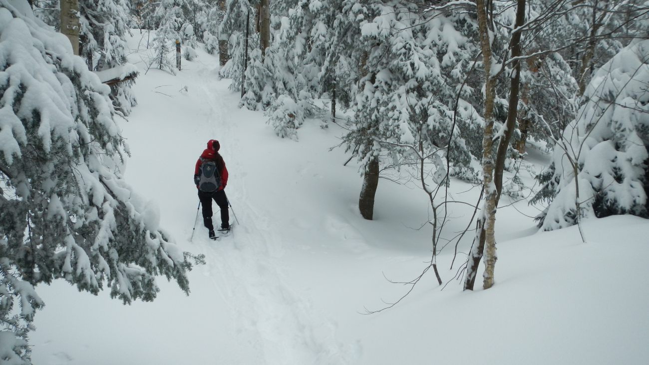 Effectivement après s’être acquitté de 5 $ pour le Parc National de Sutton et mit nos bonnes couches, on chausse ensuite nos raquettes pour aller se dégourdir les jambes par -8° à -12° dans 40 à 50 cm de neige fraîche 🙂 recouvrant par endroit 1m de neige caché, qui nous attend à bras ouverts 🙂