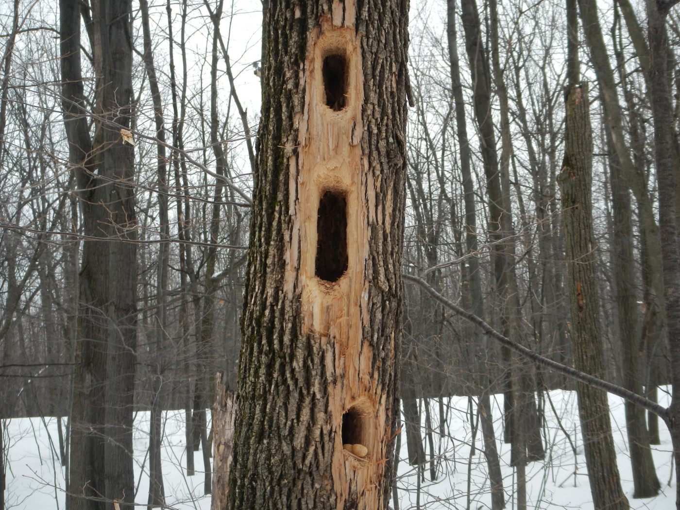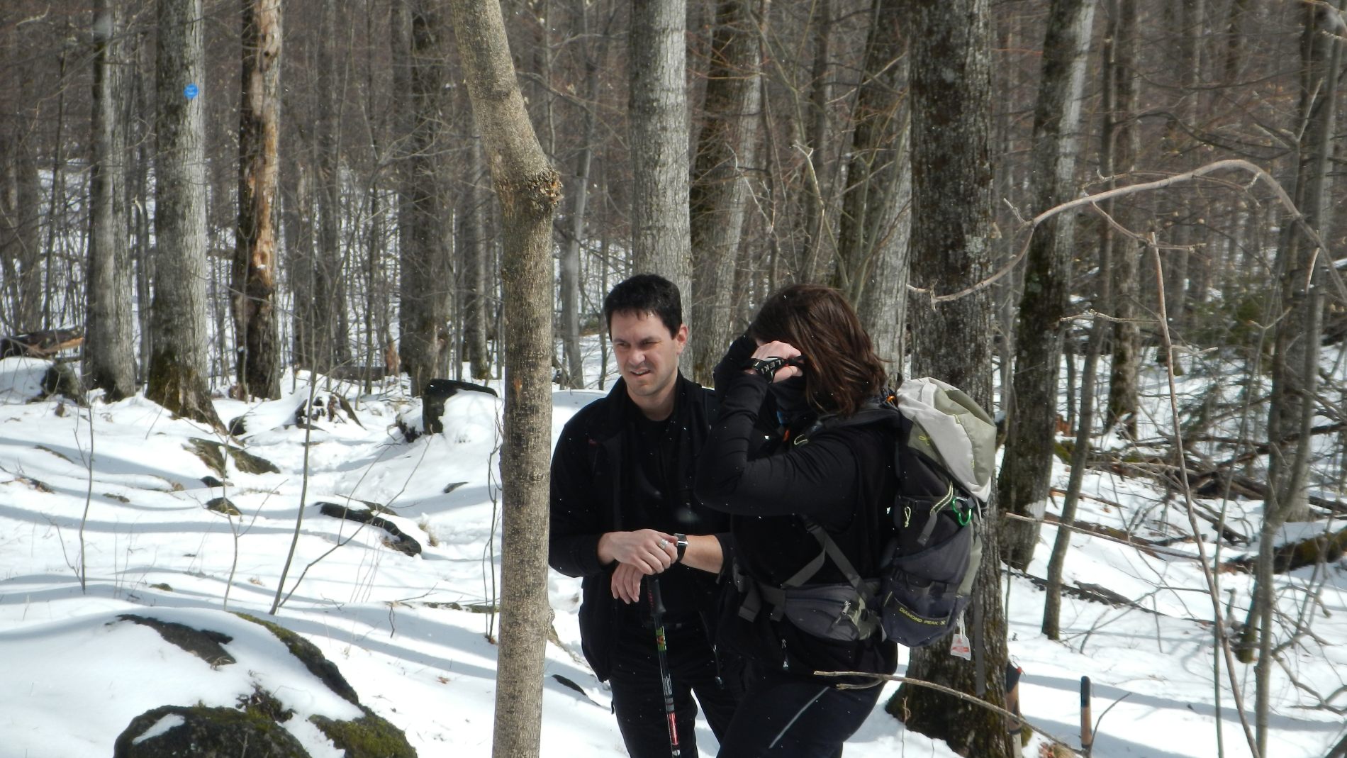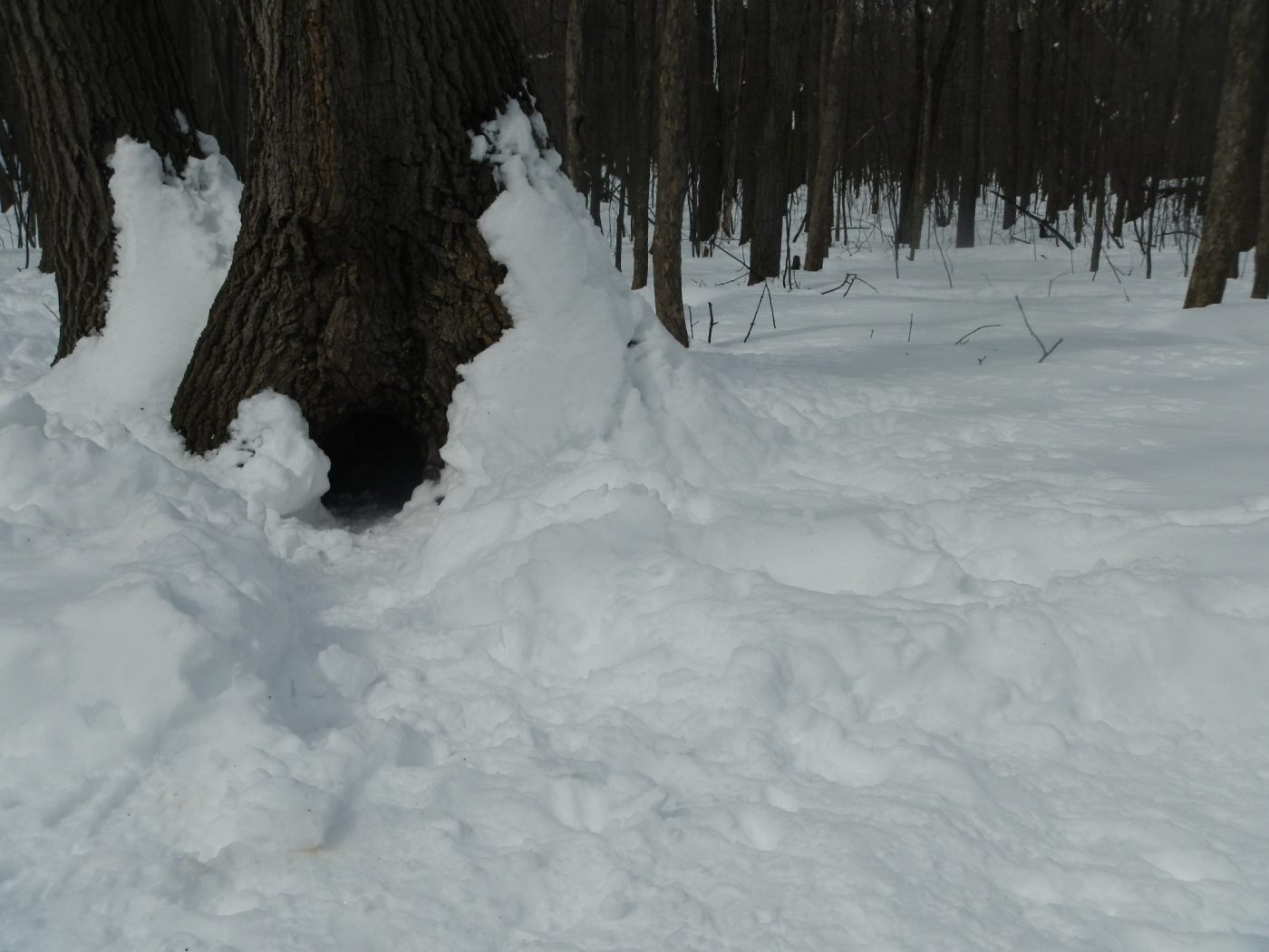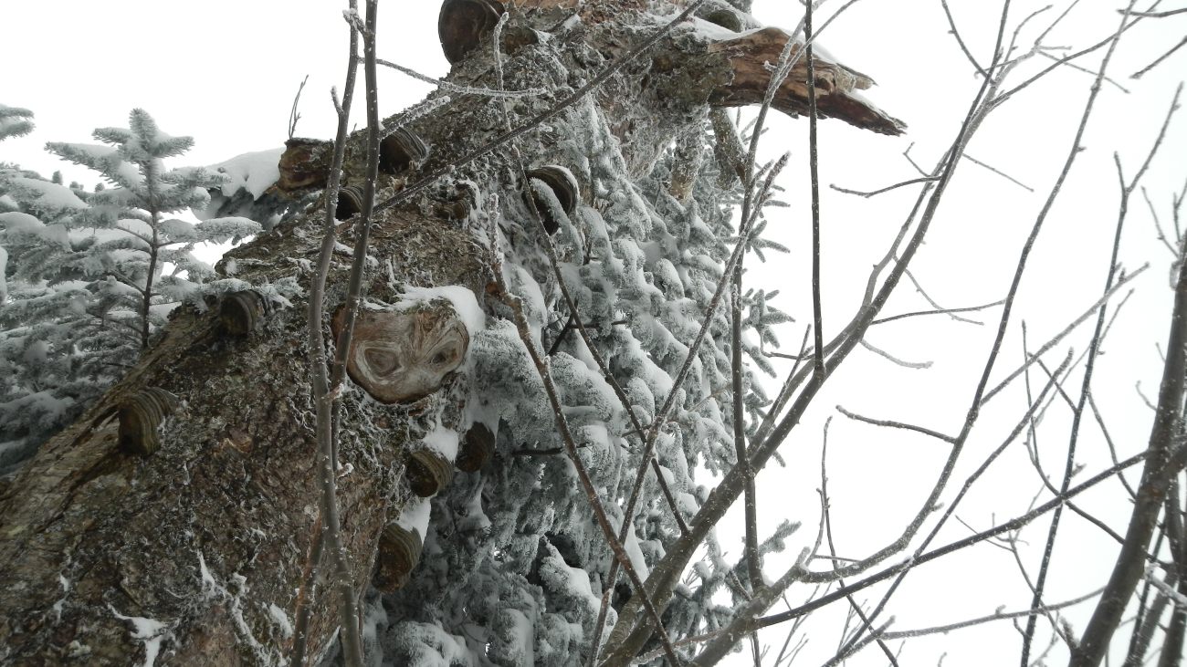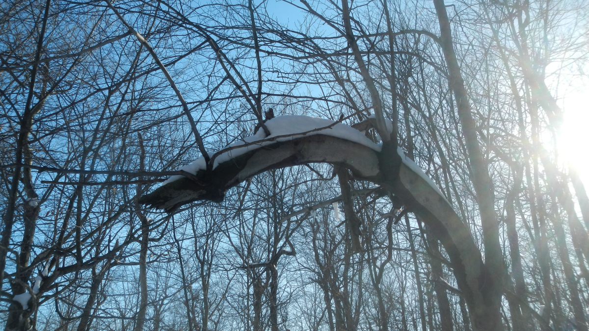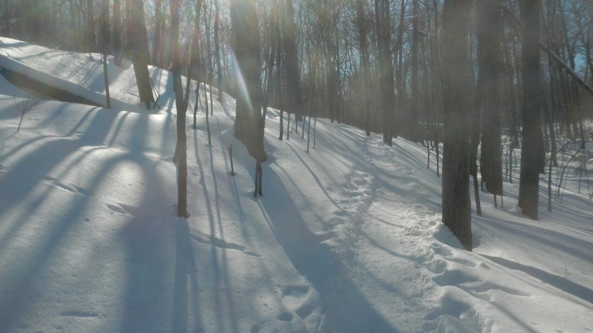 Il abrite une faune et une flore exceptionnelle, c’est pourquoi il a tant de succès auprès des citadins. Et on les comprend, car quand on pénètre dans cette foret, avec ses arbres torturés par le temps et encore son manteau blanc, ça incite à la contemplation et au calme, si on fait abstraction de l’autoroute humaine. Heureusement notre guide, le chum de Maude, connait bien le parc et les sentiers moins fréquentés, voire pas fréquentables 😉