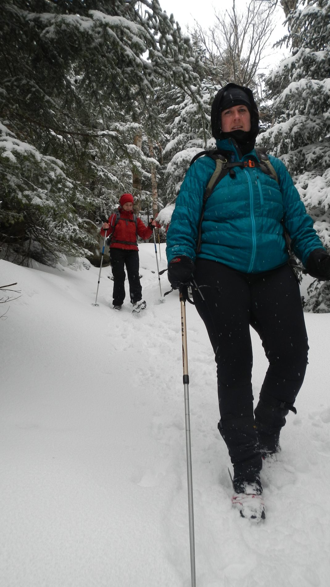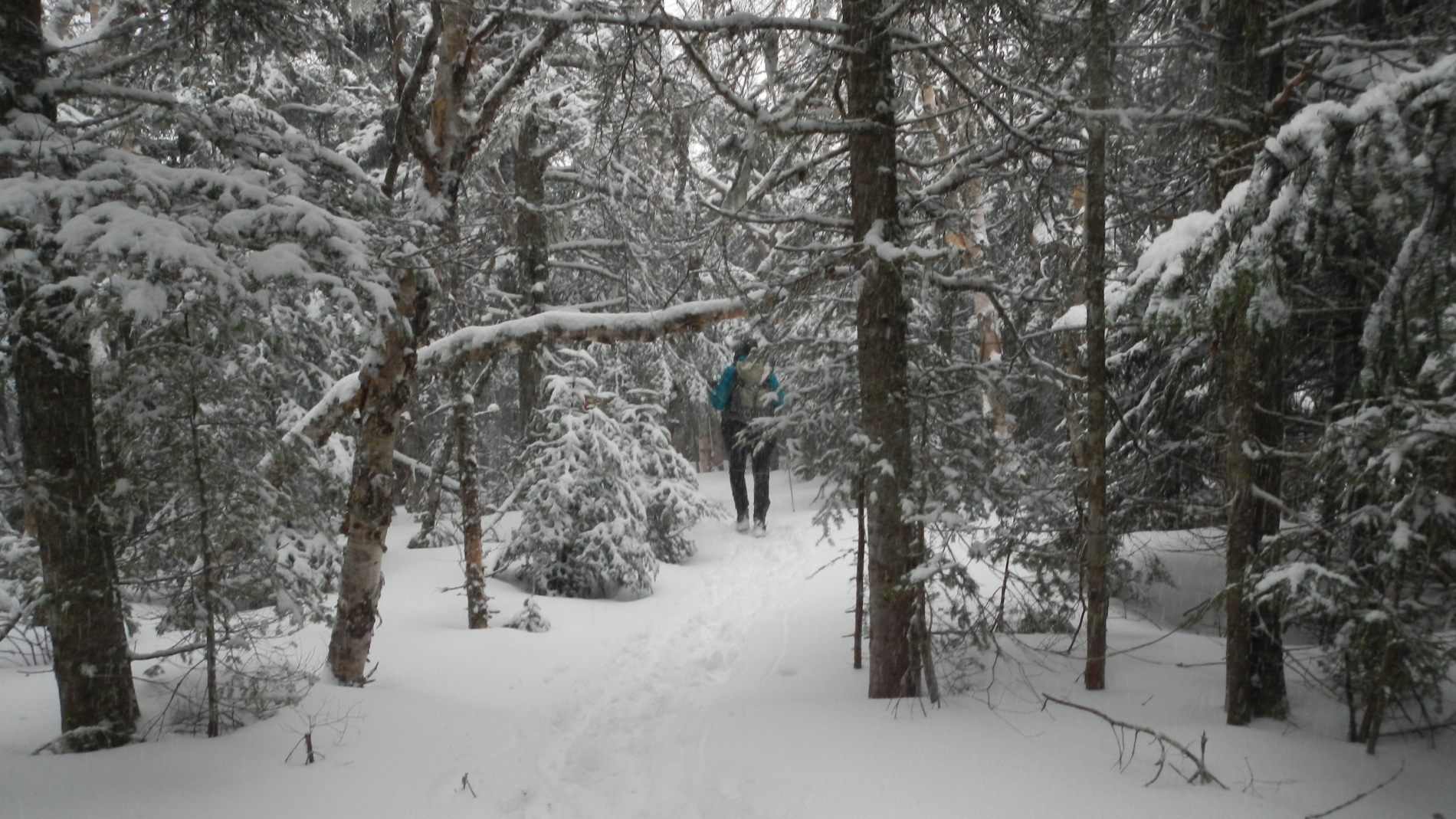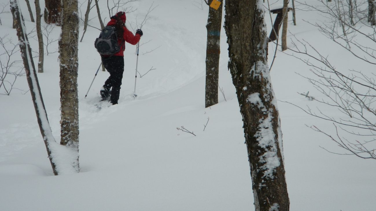 Pour la descente tandis que Julie reste sur les chemins, Jeremy s’éclate dans la poudreuse encore plus profonde, se fait des sprint , des glissades, limite du ski (on va inventer un nouveau sport national, le raquettes-ski 😉 et comme il le dise ici « c’est l’fun ! ».