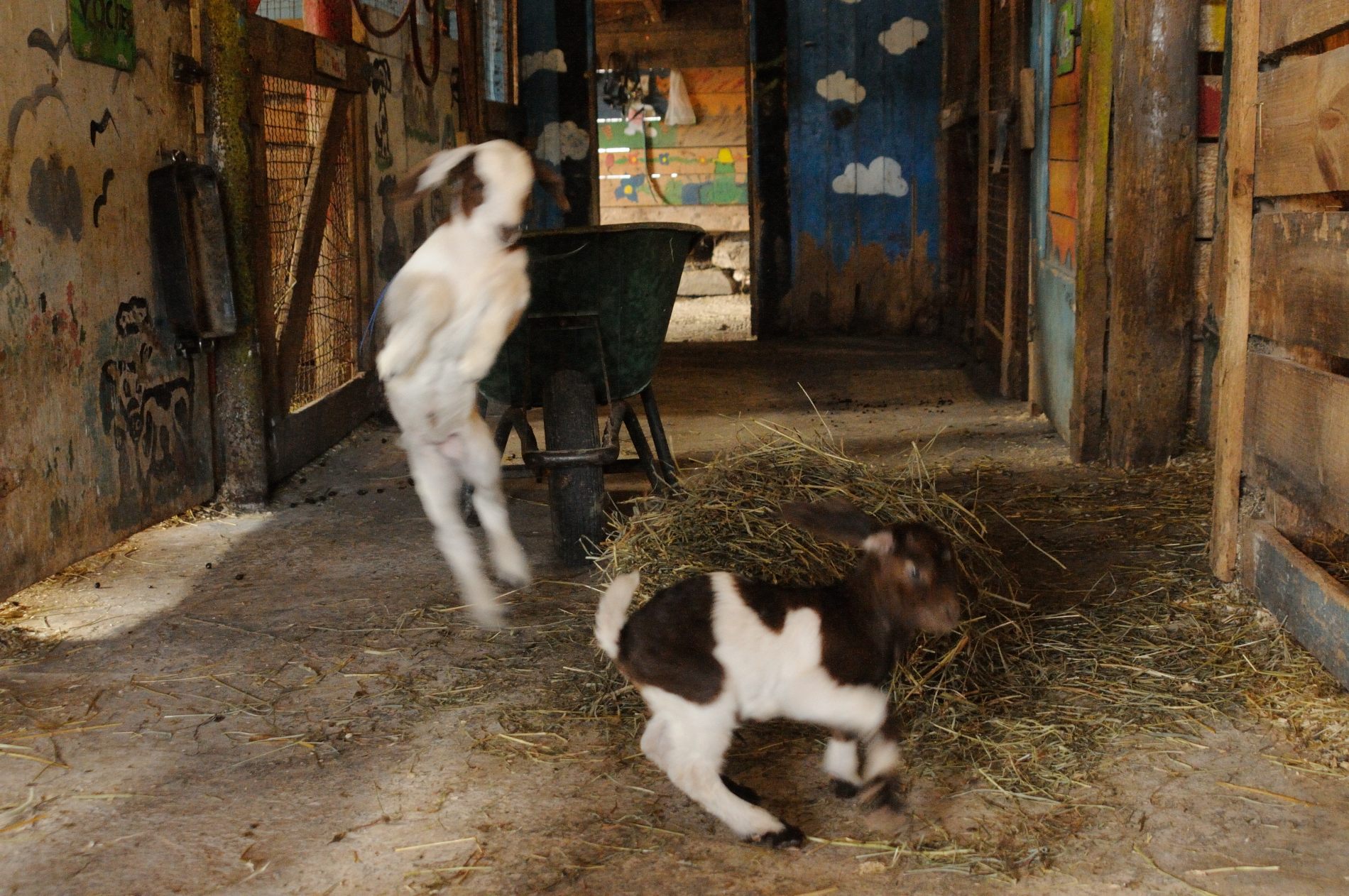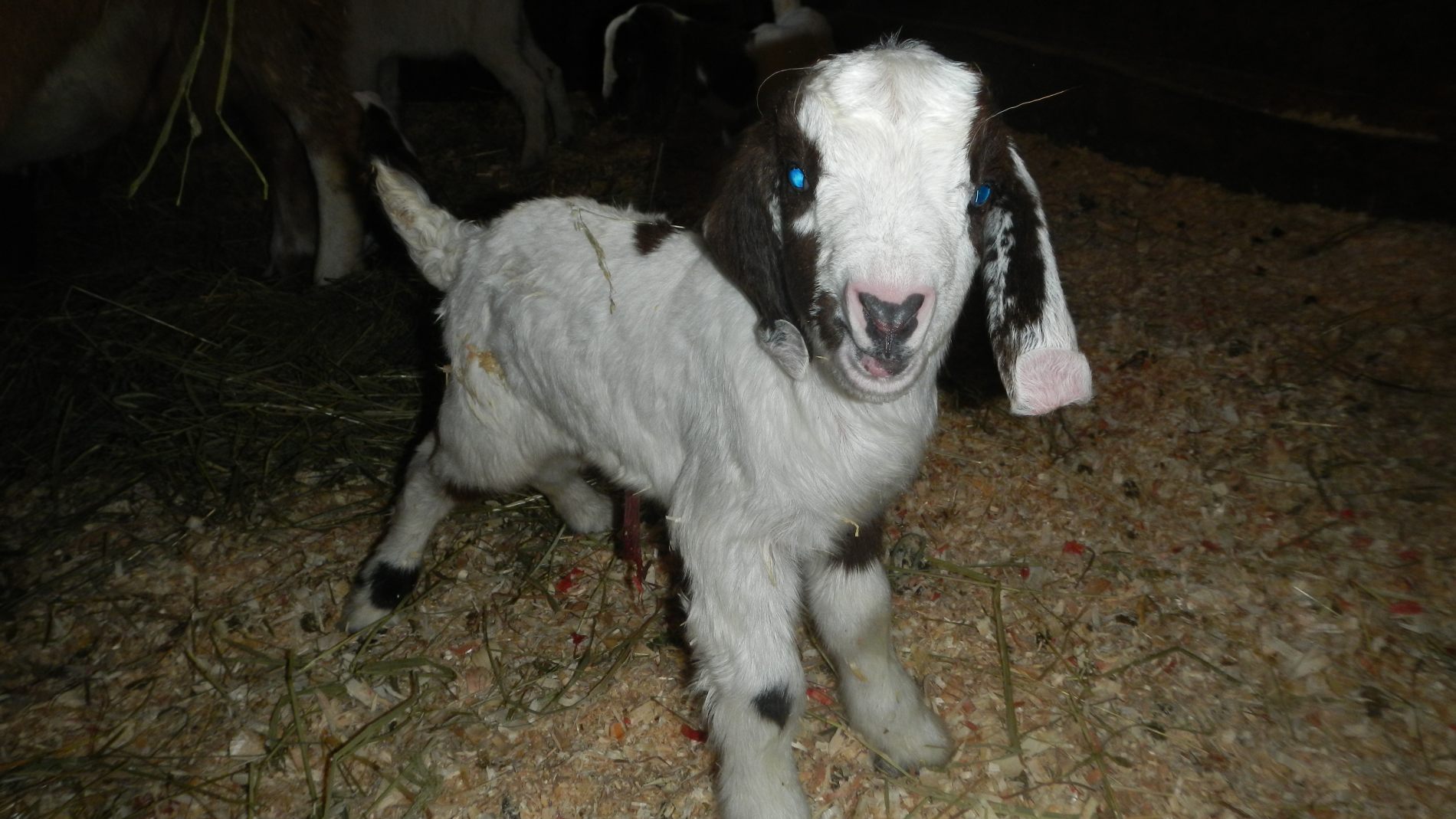 En commençant par les chèvres … D’abord, on ne savait plus trop quelles chèvres allaient dans quels enclos (on savait qu’il y avait 3 gestantes, mais on n’avait pas encore l’œil). Au retour de Nico, on se rend compte qu’une chèvre n’est pas à sa place. Et voilà que le soir même, il y a la première qui met bas de 2 chevreaux, qu’on voit naître en life ! Nos premiers chevreaux, c’est troooop cuuuuute ! C’est fou ce que ça ressemble déjà à une chèvre, les sabots, la tête, les poils. Super, la mère s’en occupe bien, ils sont déjà debout après moins d’une heure.