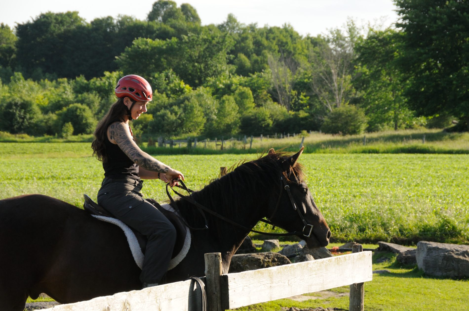 Alors cette année, qui dit lieu exceptionnel, le Canada, dit cadeau exceptionnel, et il est de taille ! Sans doute le plus gros cadeau que je ne me serai jamais fait. Certains le devinent, d’autres n’osent y croire, bien oui, j’ai acheté un cheval ! 🙂 ou plus exactement une jument, Zoé !!! et j’en suis dingue, d’où les 12 ans dans ma tête de gamine qui a un cheval dont elle n’osait plus rêver.