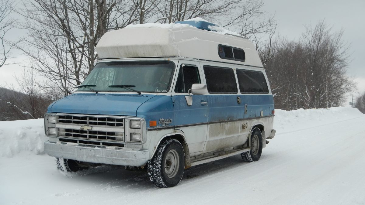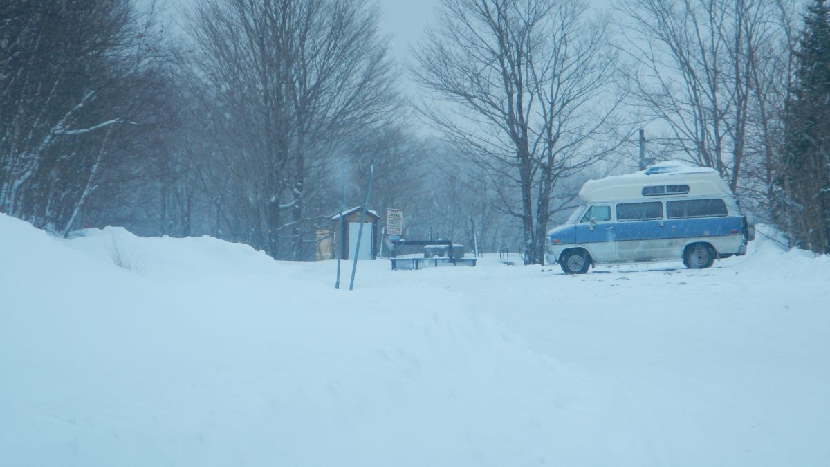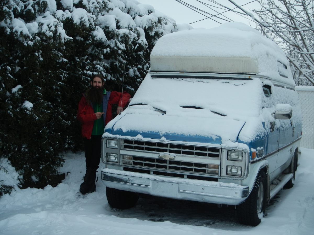 Direction le premier van … appartenant à un sexagénaire, qui vient nous chercher à un arrêt de métro, super sympa, tout le monde est comme ça ici, on le verra vite. Pour l’hiver le van est recouvert d’une bâche, que le monsieur ne voulait pas l’enlever pour la visite. Autant dire qu’on se fait une bonne idée d’une van bâché 😉 en plus des infiltrations et l’impossibilité de faire le tour et de faire un tour avec parce que le gars ne veut pas déneiger son allée. On s’attarde pas trop.