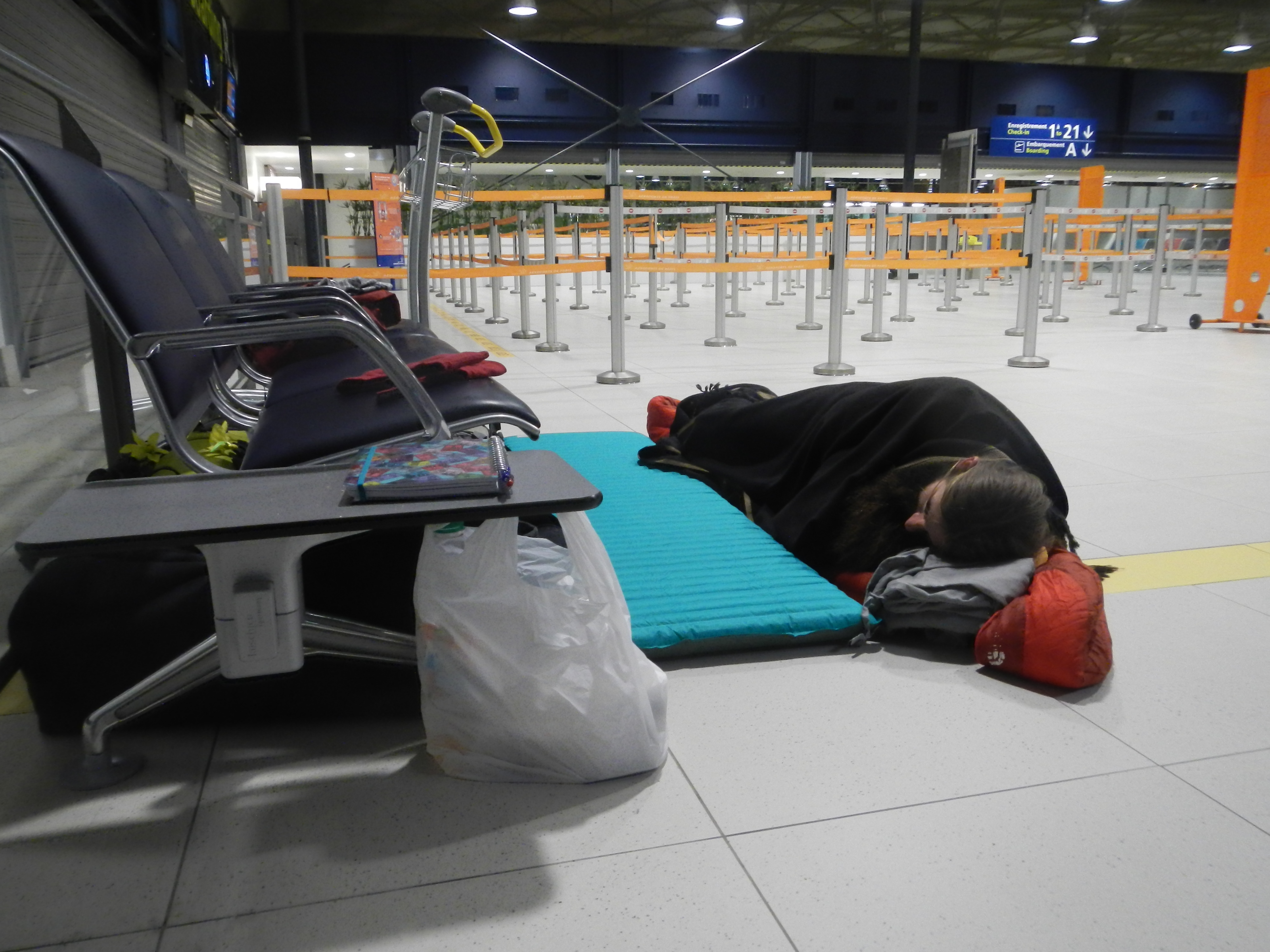 On attend notre avion pendant 15h, nous visitons donc tout l’aéroport de Paris Charles De Gaulle, ça nous occupera quelques heures.