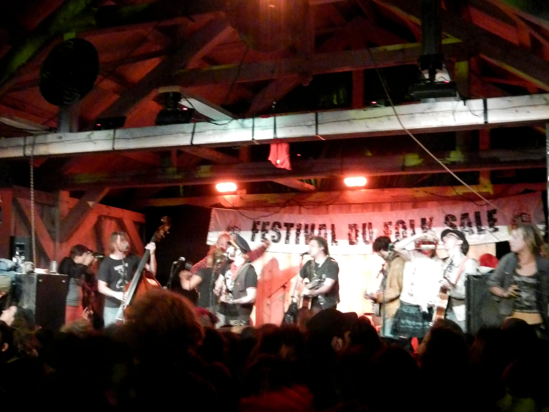 En attendant son arrivée on passe quelques jours à la Baie Saint-Paul, où on croise 2 gars qui font du stop pour être bénévoles à un festival de Folk ; on se laisse mener et on les rejoint pour le dernier jour du festival à Sainte-Rose-du-Nord. Du Folk ? Pas vraiment, on a découvert le Folk Sale, une sorte de folk de garage, très hétéroclite. Avec des groupes comme les Quebec Rednecks Bluesgrass Project. Avec des groupes et un public avec des gens pas mal débauchés, disons-le, et vivant en marge de la société ; on en a d’ailleurs pris 2 en stop avec leurs chiens.