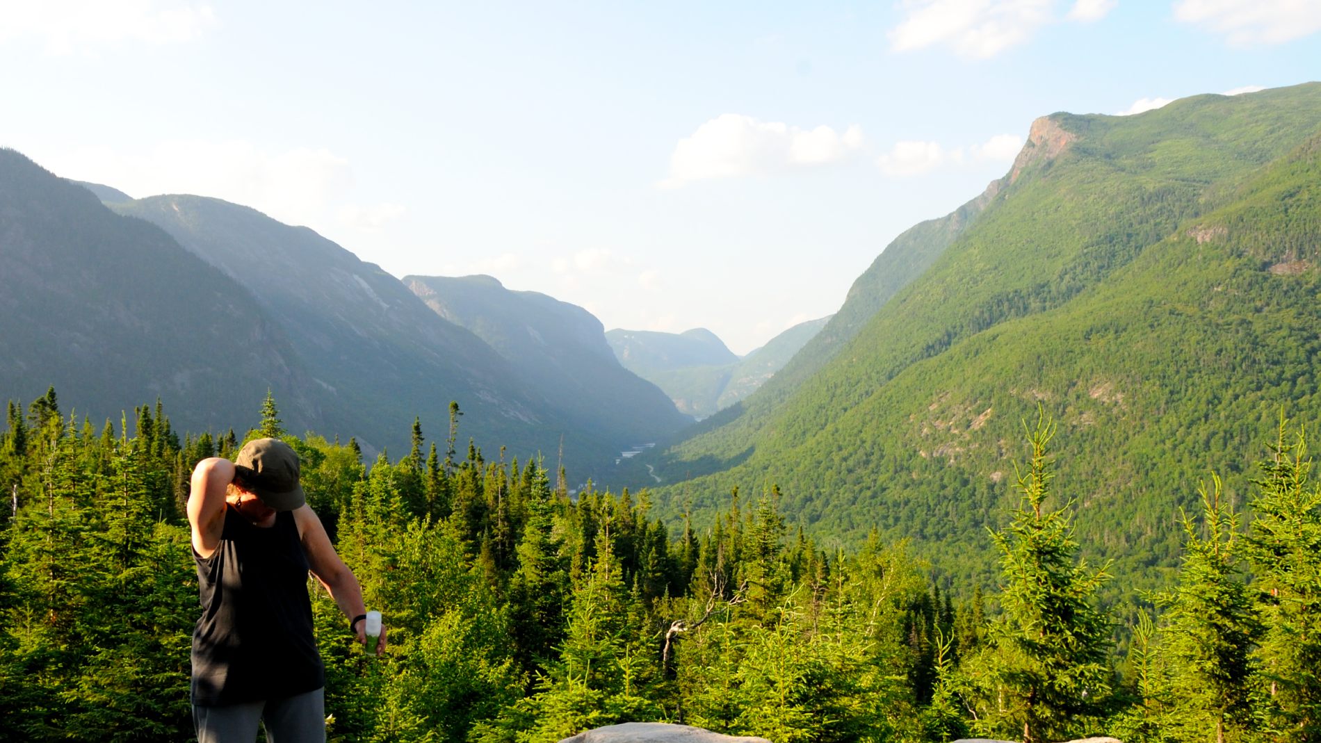 Pour l’instant, ça ne fait pas très nature tout ça, et pourtant, il y en a de magnifiques au Quebec. Alors direction le Parc National des Grands Jardins pour lui faire découvrir les lichens inattendus et la grande diversité du paysage que l’on ne retrouve que dans les 2000km plus au nord. Puis c’est dans le Parc National des Hautes Gorges de la Rivière Malbaie qu’elle va grimper presqu’à bout de souffle jusqu’à un sommet avec une vue magnifique. Elle ne regrettera pas d’être montée jusque là 🙂