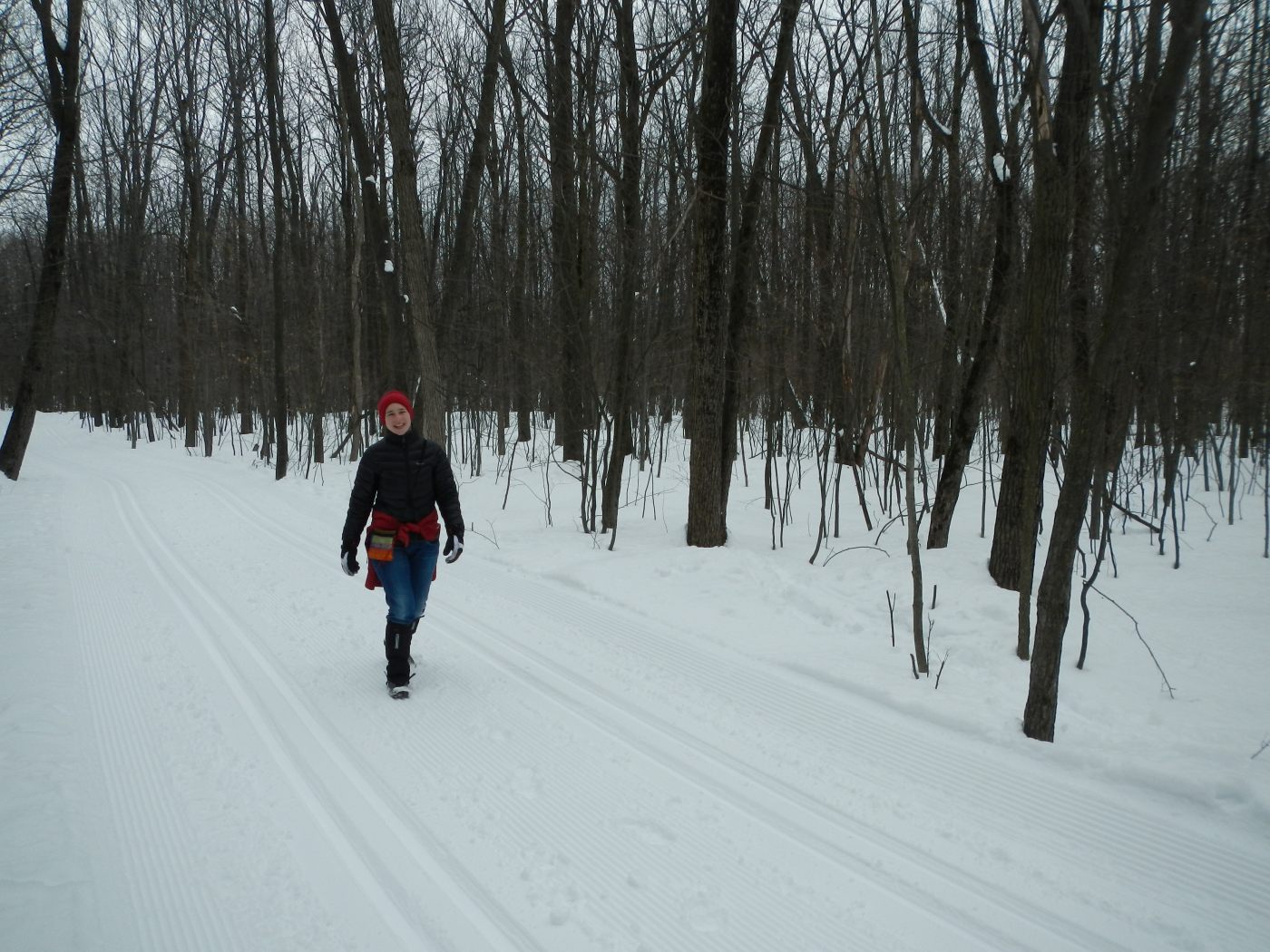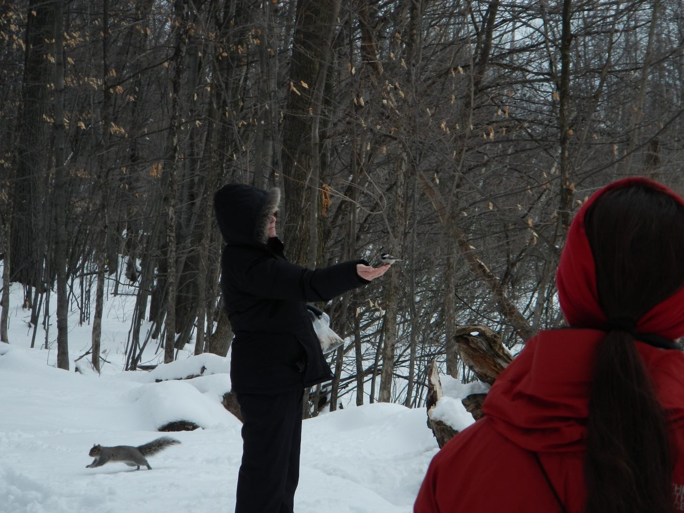 Premier réveil au parc de Longueil. Et même pas un ticket comme ils disent tous ici 🙂 Petit réaménagement du lit en table de cuisine et petit déjeuner avec vue sur le monde qui arrive et se prépare pour le ski de fond, super équipé, ou pas. Et nous, on se prépare pour une petite balade dans ce grand parc, à la rencontre des oiseaux et des très nombreux écureuils. C’est incroyable comme ici les animaux sont habitués à l’homme et à s’approcher sans crainte, et les hommes respectueux des animaux et vont à leur rencontre.