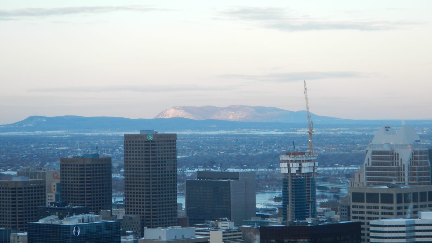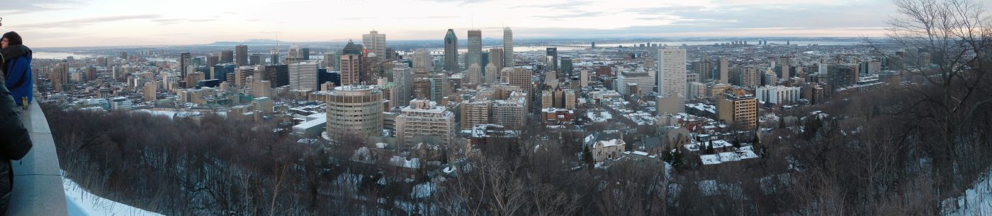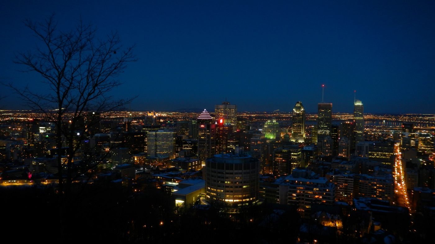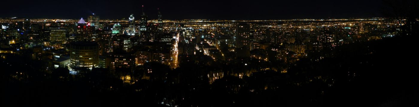 Et petite soirée au Mont Royal … Alors là, la vue sur Montréal est à couper le souffle, comme si on était au sommet de la tour Eiffel, sauf que là il s’agit d’une colline au centre de la ville, c’est génial 🙂 Comme au Mont Saint-Hilaire, les alentours sont plats, ce qui donne une superbe vue sur le centre, les grattes-ciel, le Saint-Laurent qui dégèle à vue d’œil, la rive sud. Et quand tout ça s’illumine à la tombée de la nuit et la montée de la lune, s’en devient extraordinaire. Alors bon, on est pas resté très longtemps, parce que quand même il fait encore vraiment froid et il nous faut encore trouver à manger et ou poser le campeur. Et c’est encore chez Mc Do que nous trouvons refuge (je voudrais par ces quelques mots remercier McDo pour ses parkings avec son wifi illimité sans qui ces 2 jours n’auraient pas été si économique).