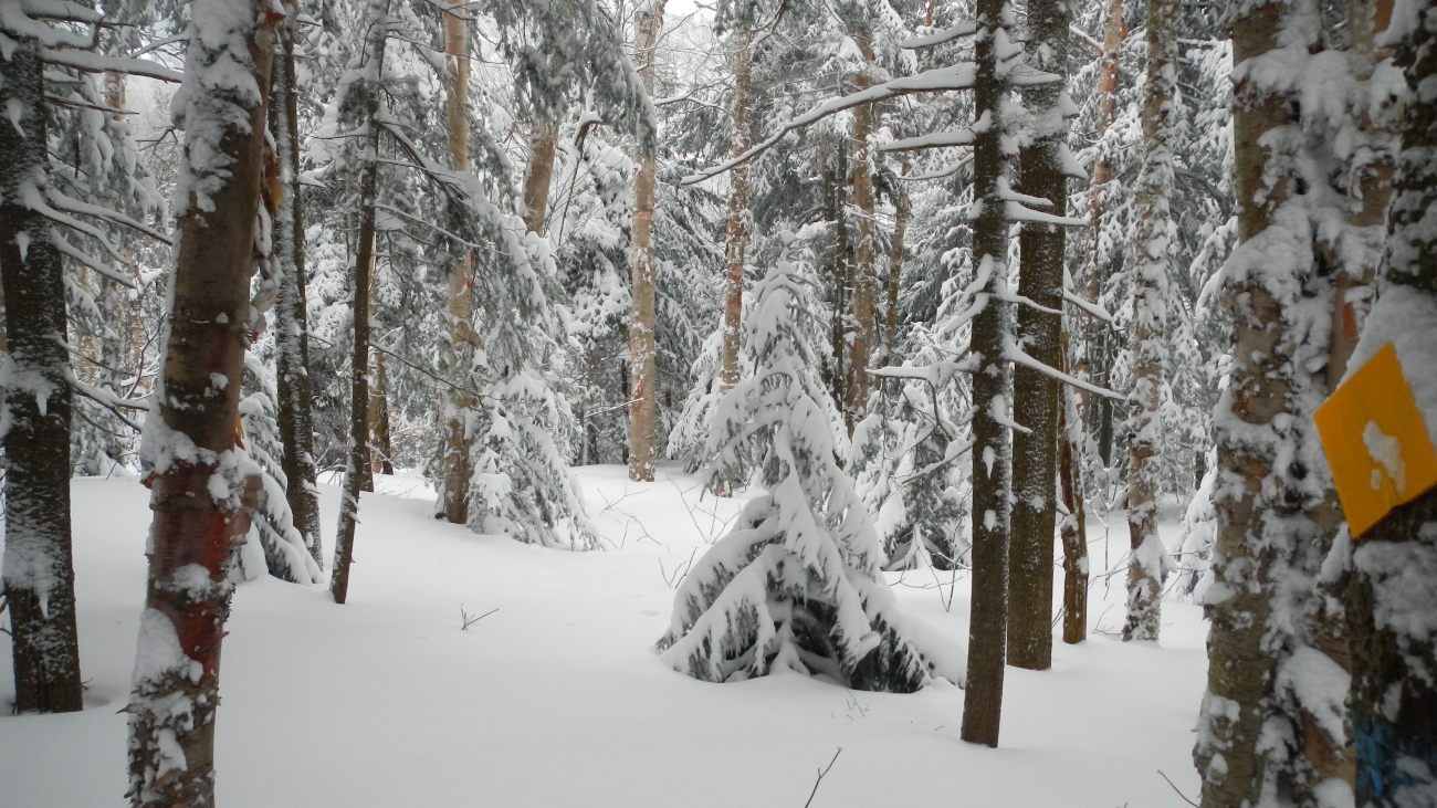 Plus on monte plus la neige devient abondante on en arrive à 50-60 cm, la foret se densifie les sentiers sont de plus en plus sinueux et raides ainsi que le paysage d’avantage féerique. C’est tout simplement magnifique tout comme au sommet à 953m avec une vue à 220° sur les alentours, les images parlent d’elles mêmes.